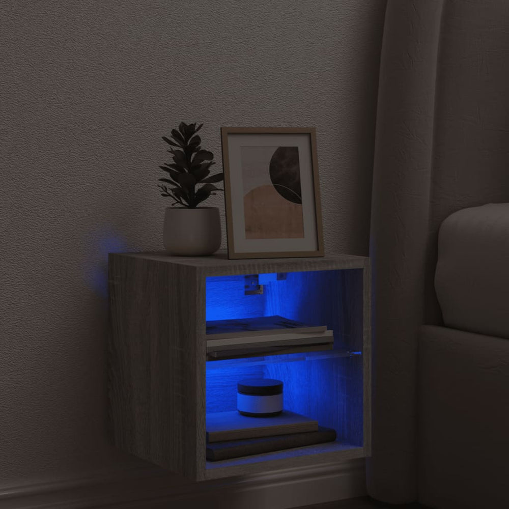 - RGB LED-verlichting: het media-wandmeubel is voorzien van levendige RGB LED-verlichting. Dankzij verschillende aanpasbare menu's kun je de kleur van de verlichting moeiteloos wijzigen en deze zelfs zo instellen dat hij automatisch verandert. Deze LED-verlichting versterkt de moderne uitstraling van de zwevende tv-kast en draagt bij aan de trendy uitstraling ervan.