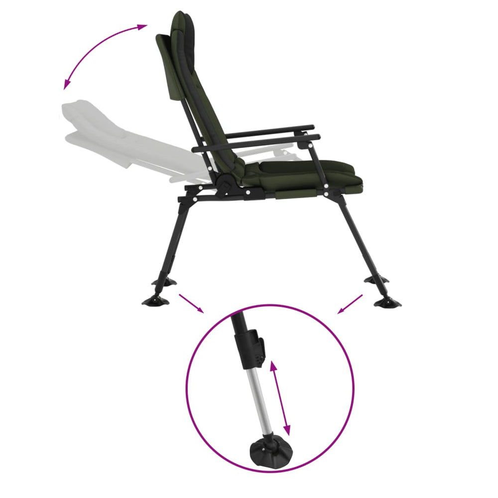 - Duurzaam en stevig: de visstoel is gemaakt van staal met een poedercoating, wat zorgt voor duurzaamheid en stevigheid voor langdurig gebruik.