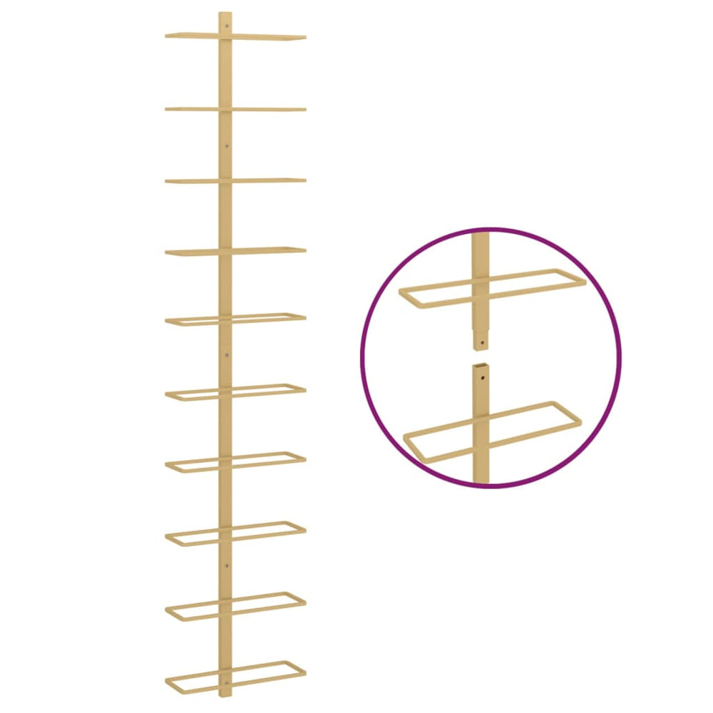 Dit wandgemonteerde wijnrek is een praktische keuze om je favoriete wijnen gemakkelijk te sorteren en op te bergen. Het is geschikt voor maximaal 10 wijnflessen.