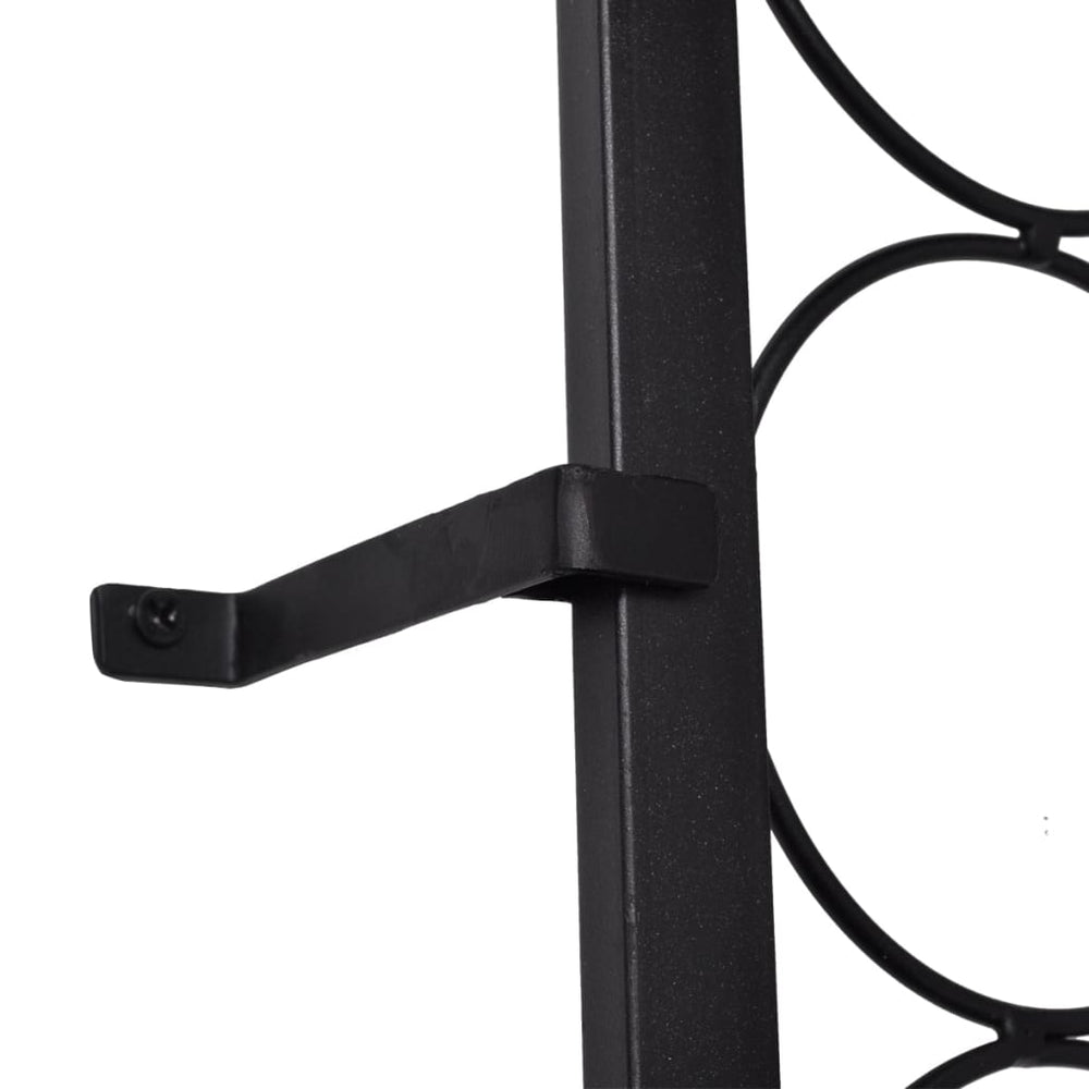 Dit staande wijnrek is een echte blikvanger. Het rek is gemaakt van smeedijzer dat volledig gepoedercoat is om roesten te voorkomen.