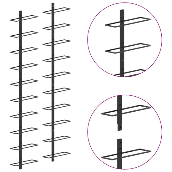 De levering bevat 2 wijnrekken die plaats bieden aan 20 wijnflessen. Elk rek is gemaakt van gepoedercoat metaal, waardoor het extreem duurzaam en gemakkelijk te onderhouden is. Het is een ideaal cadeau om aan je vrienden en kennissen die van wijn houden te geven. Bovendien kan dit wijnrek met de meegeleverde montagematerialen eenvoudig aan de muur worden bevestigd.
